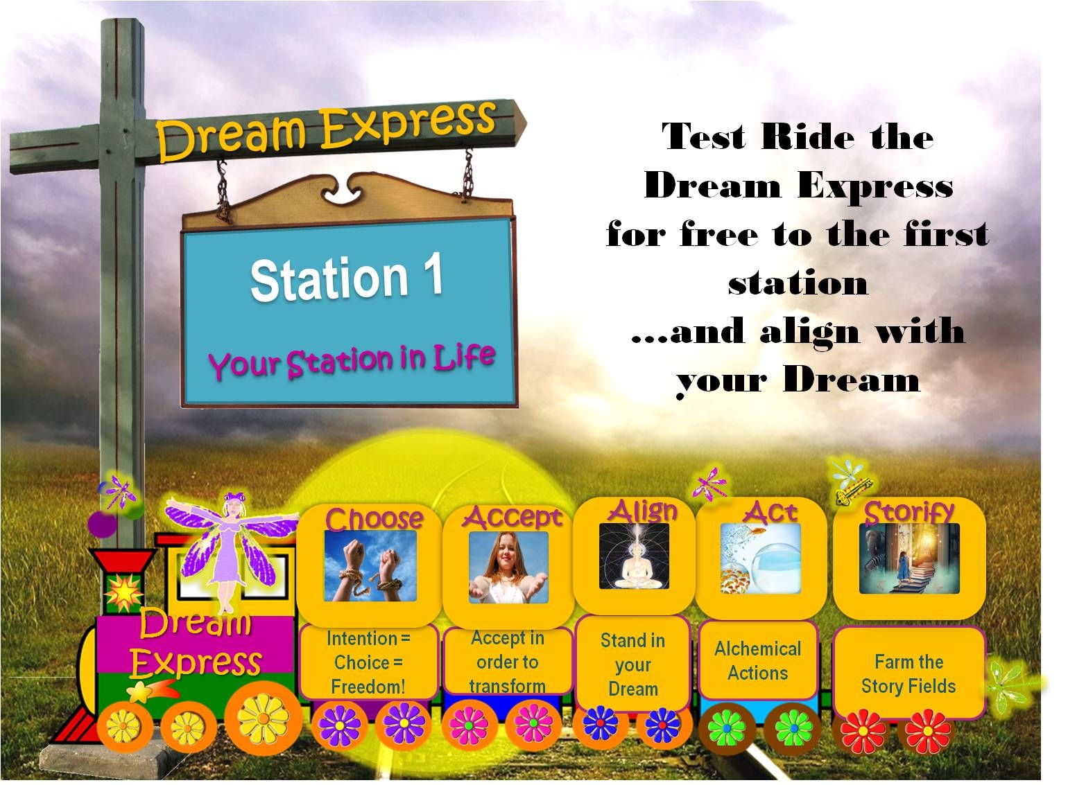 Ride in the Dream Express stopping at each station and applying the shamanic tools and insights to move closer to your dream. Work at your own pace with monthly meetings and alignment calls, as well as As to your Qs, plus Facebook like Group of like-hearted-dreamers like you.